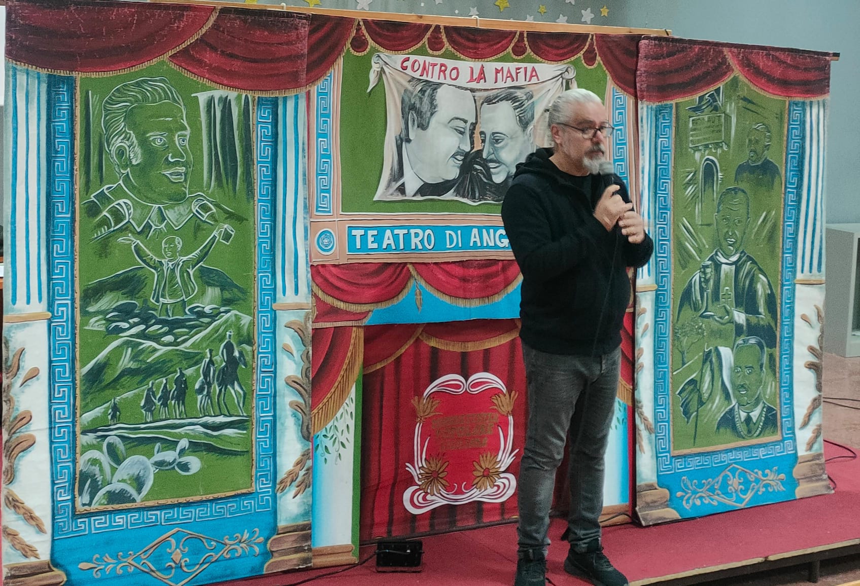 All’interno dell’Aula Magna del “Benedetto Radice” di Bronte, è arrivato il teatro dei pupi antimafia di Angelo Sicilia, attore palermitano. Una compagnia teatrale che gira l’Italia e il Mondo raccontando la storia della nostra terra, attraverso la vita e le gesta di uomini e donne indimenticabili della Sicilia.